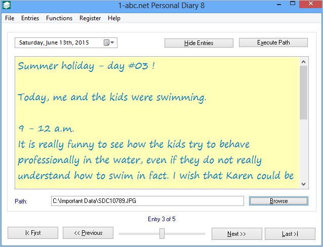 - Enter as many words as you wish - your computer’s disk space is the only limit to your diary size